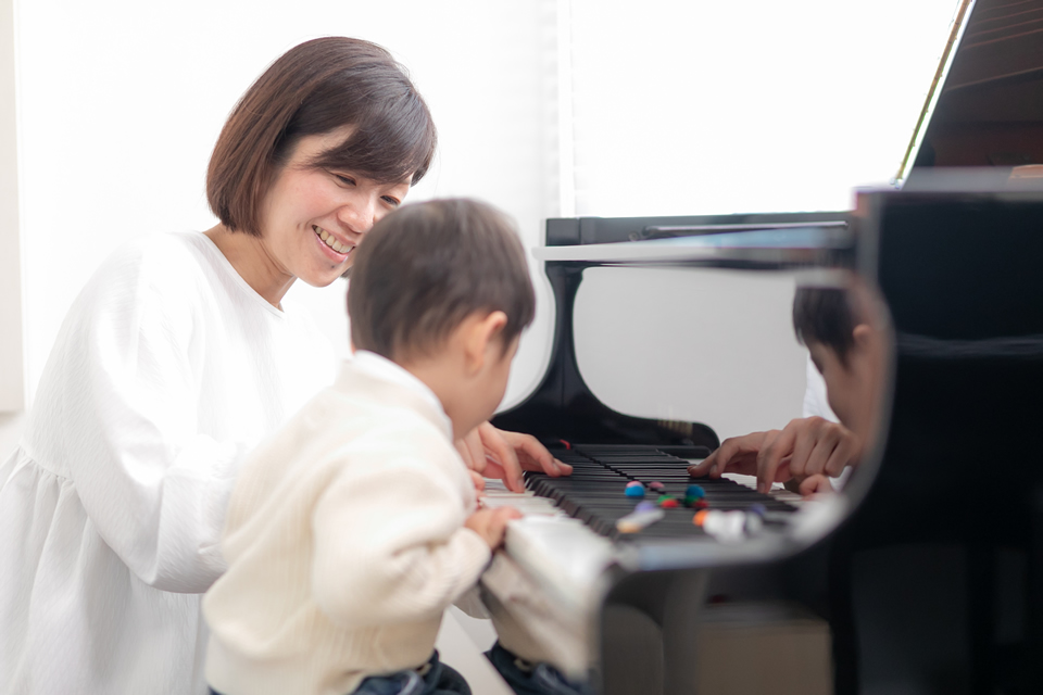 聴こうとする耳を育て、聴音・リズム聴き分け・絵本の歌い聴かせなど、知育を取り入れたレッスンで楽しく学びます。